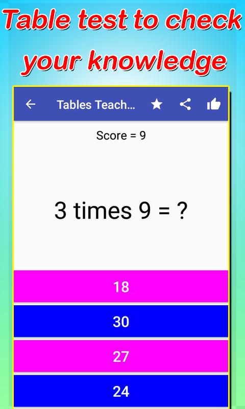 O jogo de mesa de matemática inclui tabelas de um a cem de 1 a 100 até multiplicar por vinte e também tem tabelas de matemática de 2 a 20 também com etapas de teste para verificar seu conhecimento facilmente em várias tabelas, fornecendo mcq Perguntas Respostas horários tabelas de matemática prática e tabelas de tempo do aplicativo de teste gráfico.