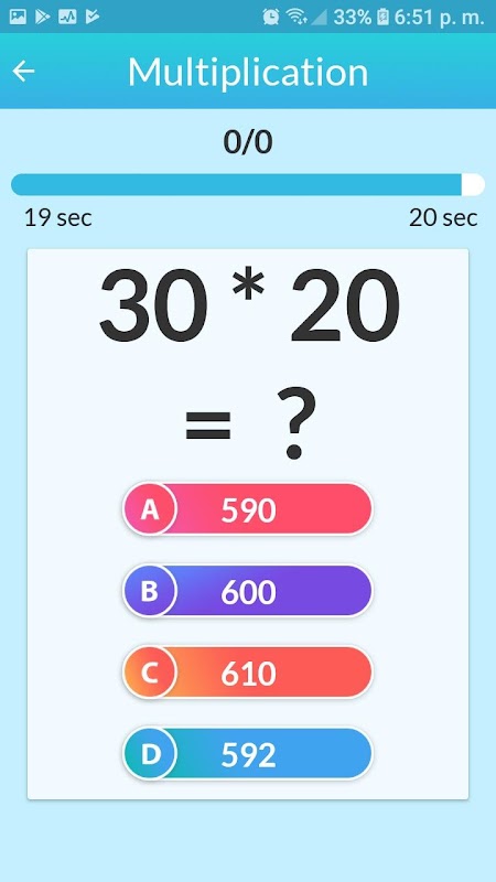 • você pode jogar para qualquer operação particular de adição, subtração, multiplicação, divisão ou você pode jogar em modo misto onde quatro operações aleatórias aparecerão.