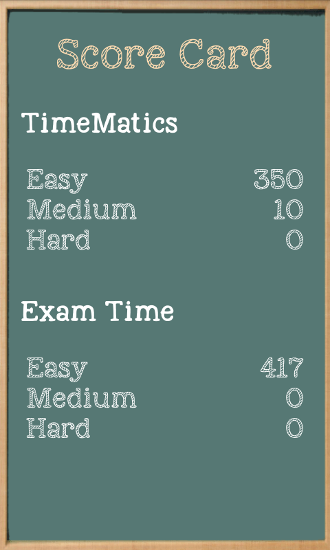Use resets wisely to tackle hard games.Simple to understand and fun to play. Make your kids play the game and let them enjoy. You will not have to worry about their maths score thereafter. The game also offers three levels i.e. Easy, Medium and Hard to to challenge you. Unlock ExamTime mode and different levels as you score gradually in previous ones.