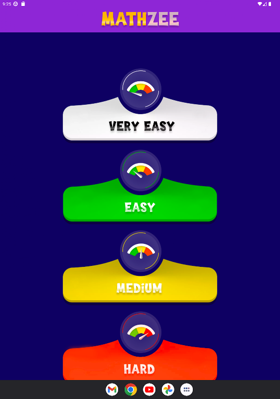 É um jogo incrível para estudantes de educação para crianças. É como um jogo de perguntas. Neste também existem quatro categorias diferentes, como adição, subtração, multiplicação e divisão. Você precisa dar a resposta correta. Nesta dificuldade fácil a difícil com modo de jogo sem fim.