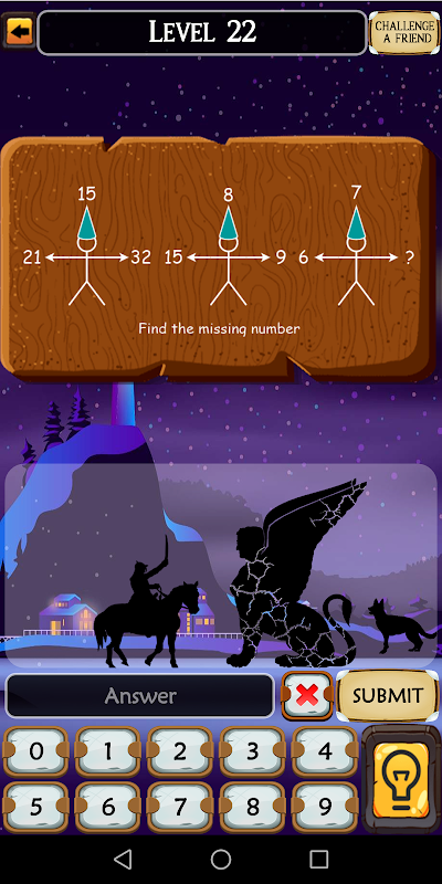 Este jogo do cérebro é projetado em torno de uma história interessante de um guerreiro que precisa responder a quebra-cabeças de matemática para completar os desafios: