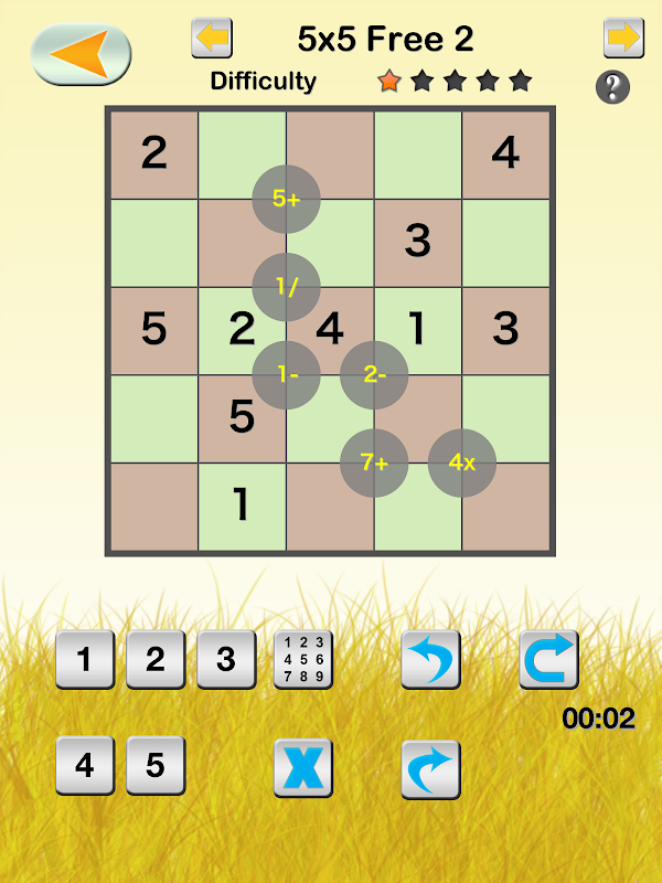- A number and a sign of mathematical operation (addition, subtraction, multiplication, division) - a number is a result of an operation execution with numbers in diagonally adjacent cells.