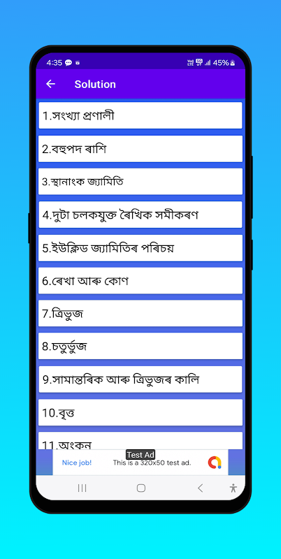 "Solução de matemática da classe 9 para o meio assamês" é um aplicativo móvel inestimável, feito sob medida para fornecer soluções abrangentes para o currículo de matemática para alunos da classe 9 que estudam em escolas médias assamesas. Este aplicativo oferece uma extensa coleção de problemas resolvidos, explicações passo a passo e exercícios práticos especificamente alinhados com o programa médio assamês, ajudando os alunos a compreender conceitos matemáticos com facilidade. Com uma interface amigável e conteúdo acessível, este aplicativo serve como um companheiro confiável para os alunos, auxiliando-os na compreensão e domínio dos fundamentos da matemática em sua língua nativa, melhorando assim seu desempenho acadêmico e confiança na matéria.