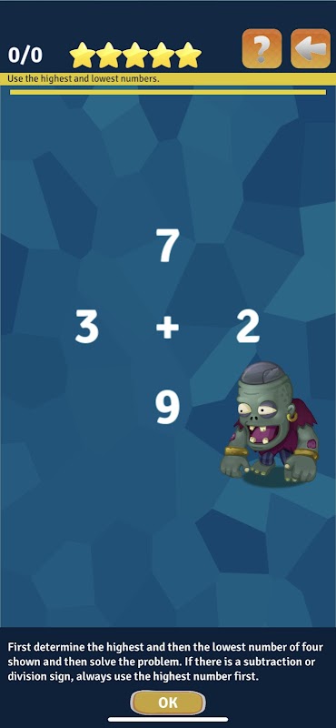 Prove que é um ninja da matemática resolvendo toneladas de problemas de matemática. O Maths Progress Advanced é um jogo de matemática excitante e divertido que impulsionará a aprendizagem da matemática de forma rápida e fácil. É concebido com toneladas de categorias de jogos interactivos de matemática. Cada categoria que seleccionar trar-lhe-á desafios de jogo matemático diferentes! No total são 13, que testam as suas competências matemáticas. Cada um dos 13 jogos de puzzle está dividido em dez testes separados de dificuldade crescente, e não se pode avançar para o nível de dificuldade seguinte até se ter completado o teste anterior. As estrelas entre cinco são atribuídas com base no número de perguntas que responde e na rapidez com que completa os jogos de puzzle.