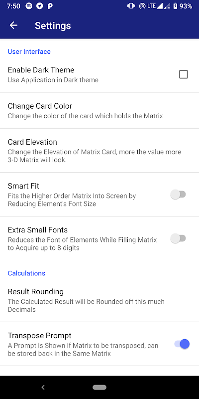 Um projeto de código aberto, com o slogan de "Matrix Made Easy", uma interface de usuário simples e atraente, com toneladas de personalização e suporte para números mais altos possíveis tanto em quantidade (até 999999) e precisão (até 6 casas decimais). A calculadora pode fazer qualquer variável de 1x1 a 9x9 Matrix.