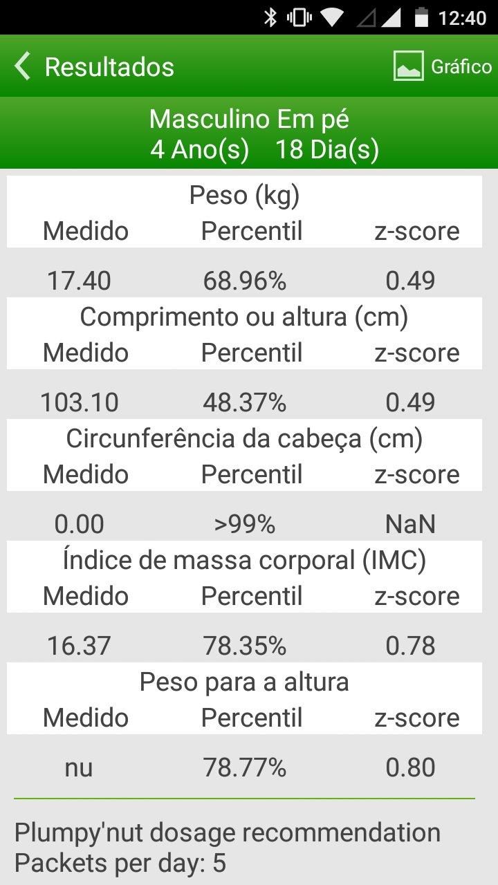 A Maventy Mobile app fornece z-scores e percentis de medidas antropométricas básicas, como peso, altura, perímetro cefálico e peso para a altura, com base em estatísticas vitais de uma criança. Os resultados são calibrados contra os padrões da Organização Mundial da Saúde (OMS).