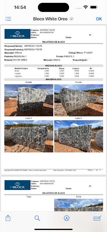 O MBLOCK é um aplicativo completo para marcação de blocos e controle de produção em pedreiras, que acompanha todo o processo desde a extração até a emissão de nota, romaneio, controle financeiro e estoque.