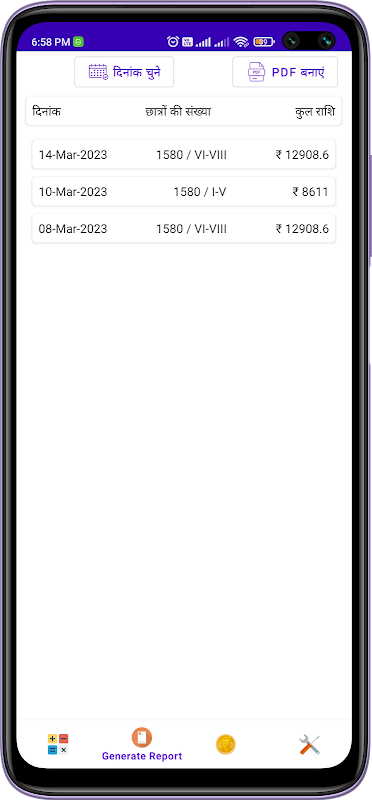 Calculadora de refeições do meio-dia é um aplicativo fácil de usar desenvolvido para ajudar os professores a calcular o custo das refeições do meio-dia de um dia e gerar um relatório em formato PDF. O aplicativo foi projetado para tornar o cálculo dos custos das refeições simples e eficiente. Com a interface fácil de usar do aplicativo, os professores podem criar seus próprios ingredientes e lista de preços de acordo com suas necessidades. O aplicativo também permite que os usuários compartilhem o relatório com quem quiserem, facilitando o compartilhamento com administradores escolares ou outras partes relevantes.