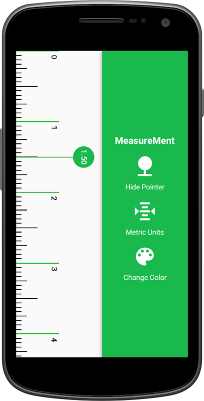 A simple material design inspired Measurement/ruler App with metric units, imperial units, and an interactive pointer.
