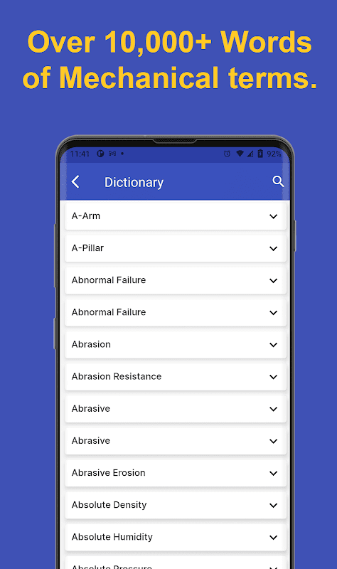- Over 10000+ word dictionary of mechanical terms.