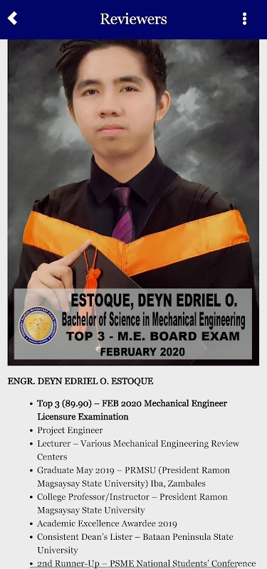 This app is a Learning Management System intended to help users tackle all the Philippine Mechanical Engineering Licensure Examination subjects. The app's primary objective is to enhance the knowledge and technical proficiency of the user needed to pass the licensure examination. It is designed to equip the user with the required competencies for a lifelong career in Engineering. Moreover, it also caters to students enrolled in mechanical engineering courses.
