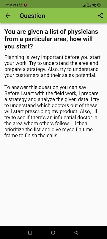 Perguntas sobre entrevistas com representantes médicos: para aqueles especificamente interessados em representantes médicos, nosso aplicativo inclui uma seção dedicada com mais de 100 perguntas focadas nos conceitos de representantes médicos. Aprofunde seu conhecimento e aumente sua confiança na entrevista do representante médico.
