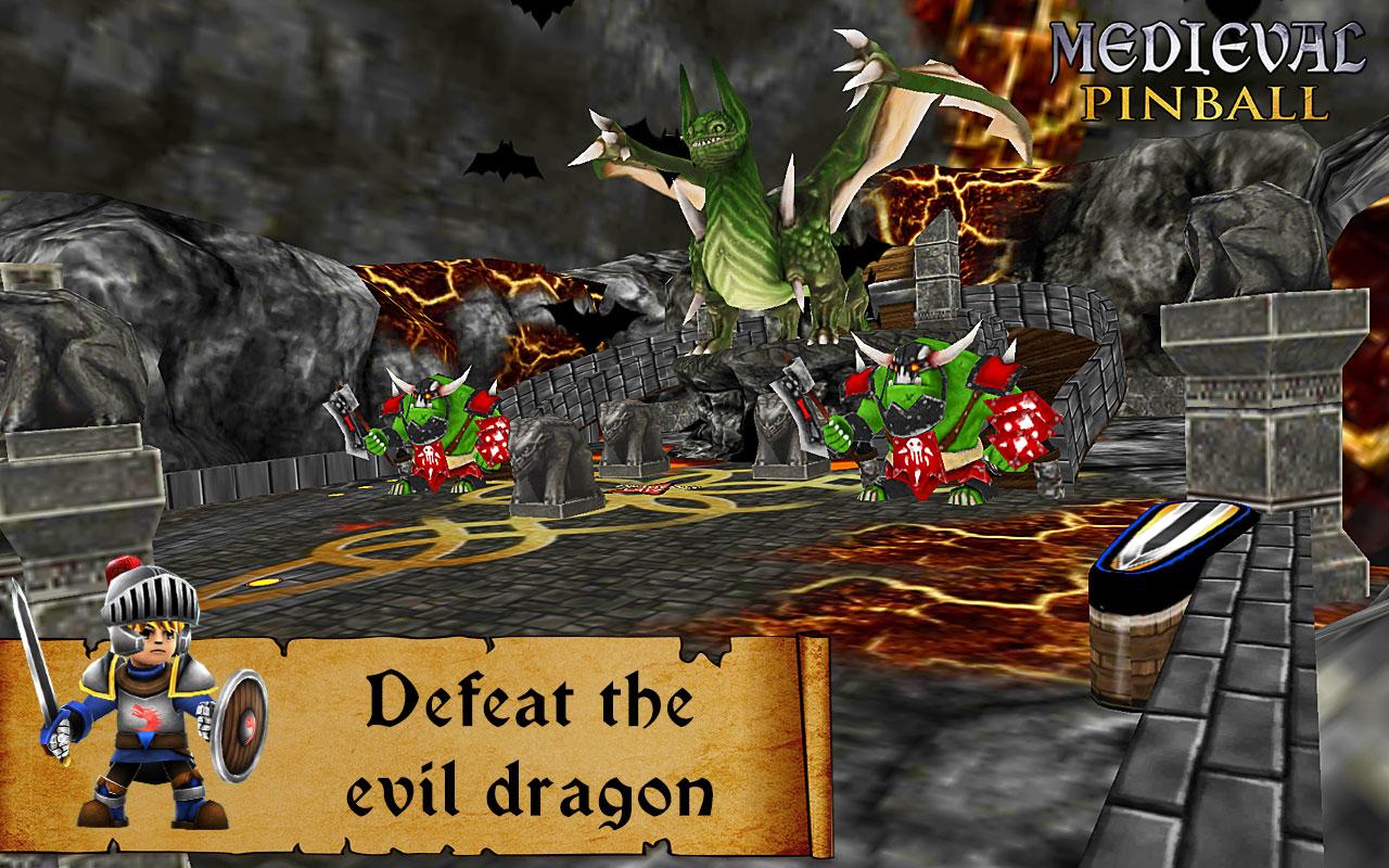 Viaje no mundo medieval de Pinball, derrote o dragão e torne-se um herói.