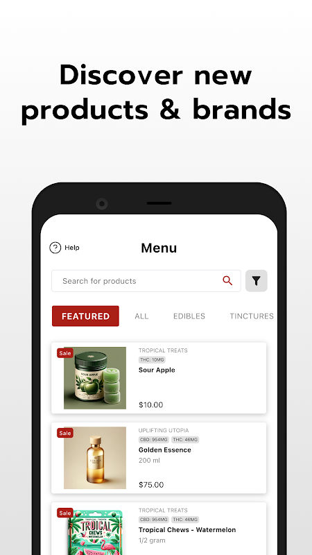 2. Confira a aba "Menu" para saber mais sobre nossos produtos. Aqui você pode navegar pelas nossas categorias, digitar na barra de pesquisa e selecionar filtros para restringir o menu aos produtos que deseja encontrar.