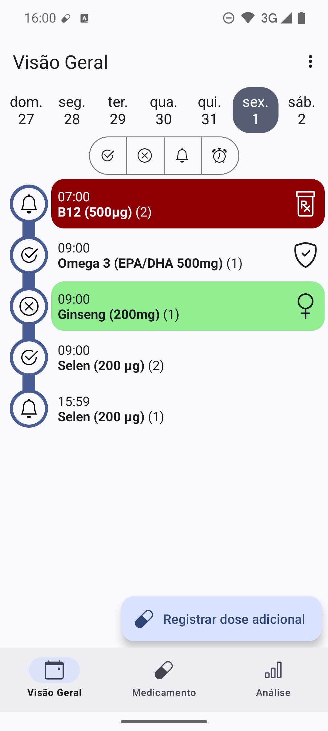 - Confirme ou descarte lembretes para registrar o uso da medicação com precisão.