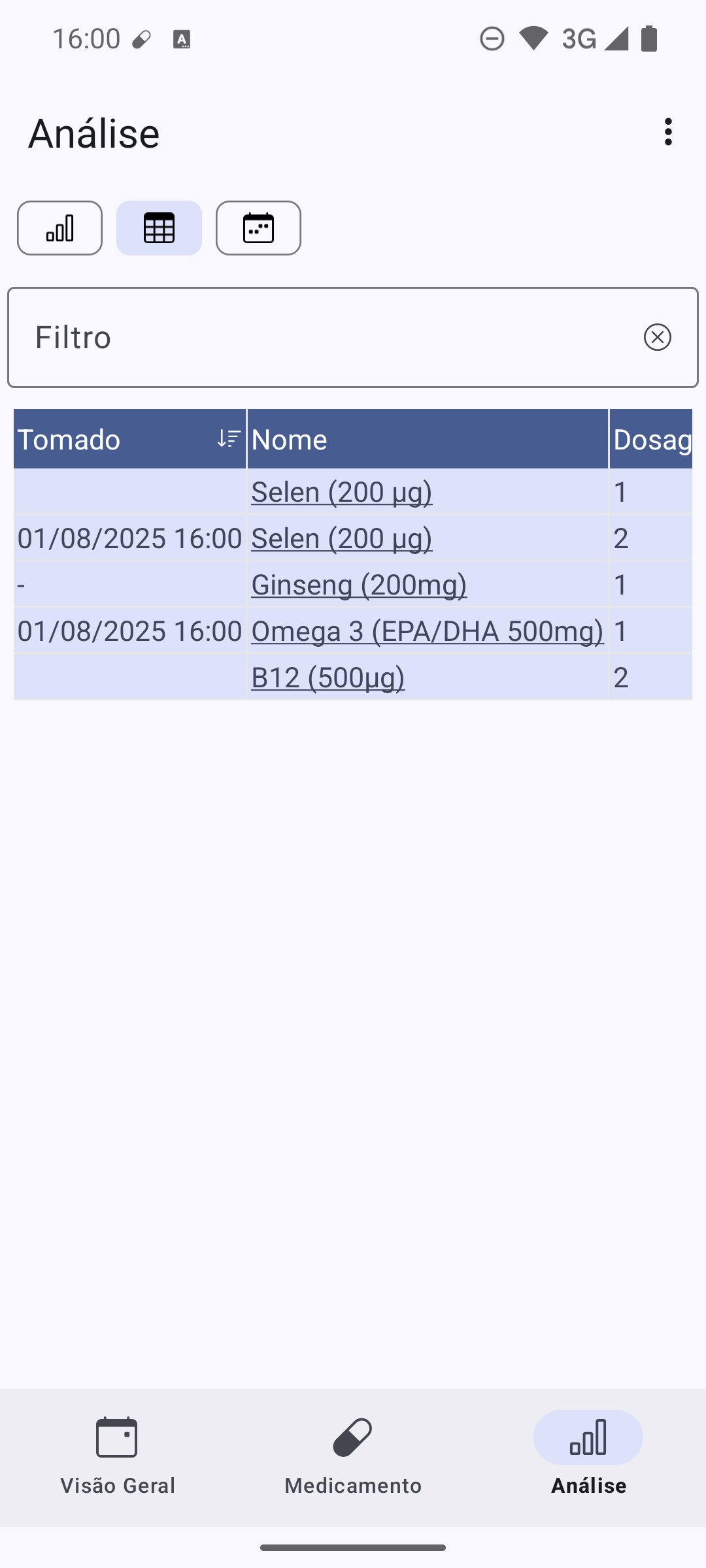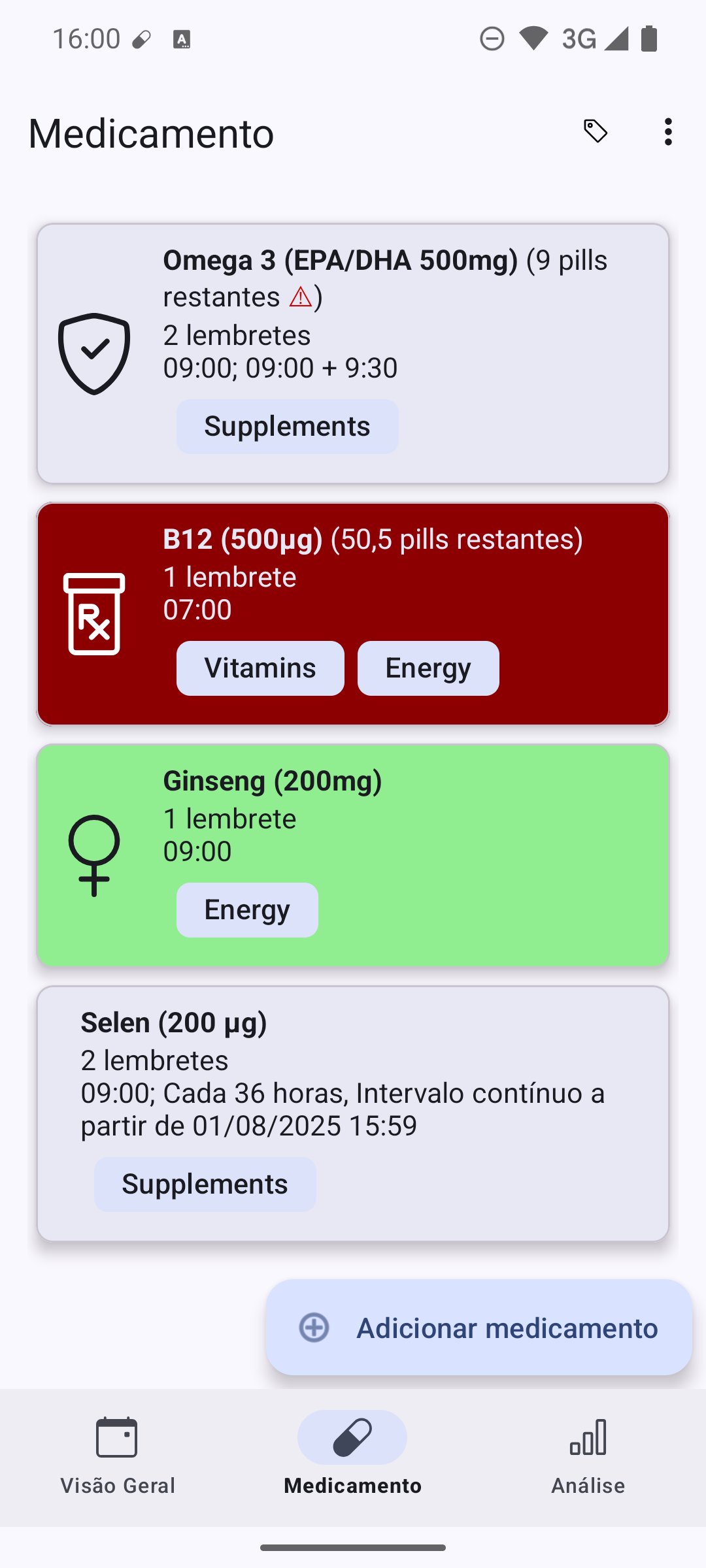 - Categorize e filtre seus medicamentos.