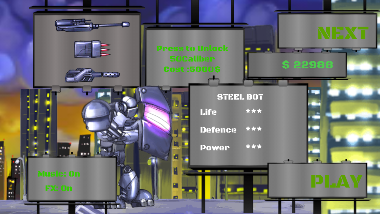 Unleash your Robo fury with our 50Caliber guns, Rocket Launchers and Laser Shots.