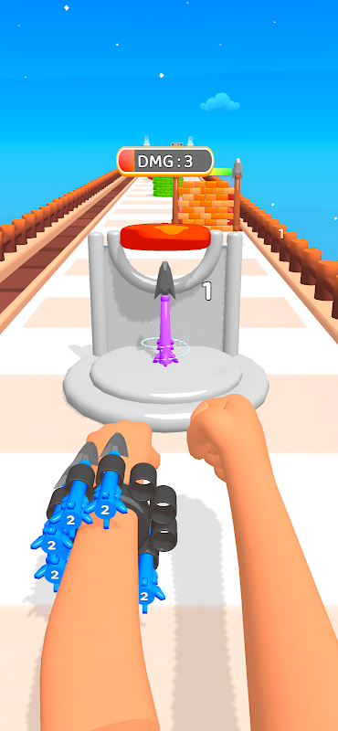 Evolua a arma em seu braço esquerdo e ataque objetos mais distantes! Evolua seu braço direito e ataque objetos próximos com mais força!