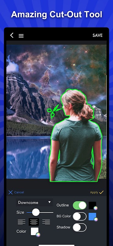 - Cut-Outs! Recorte uma parte de uma foto, como um rosto, e adicione-a a outra foto