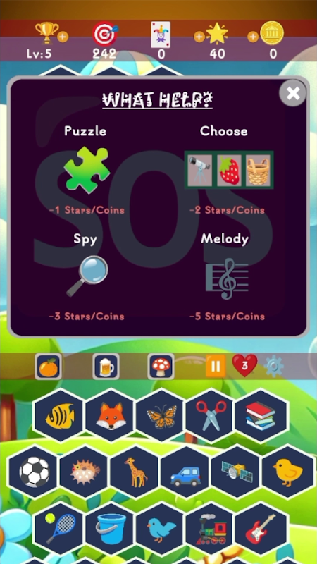 Vários recursos para superar os desafios mais difíceis (escolha o correto, reorganize a imagem, reconheça a imagem desfocada, ouça a nota)