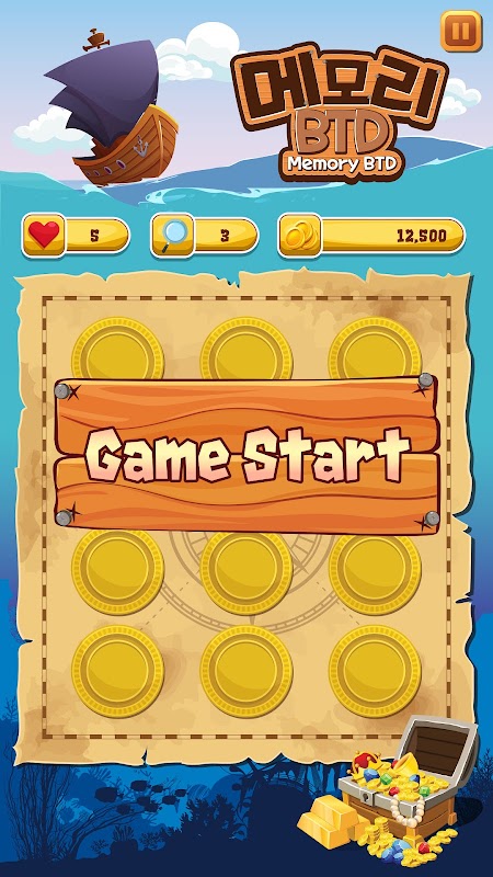 MemoryBTD é um jogo onde você joga uma moeda e encontra um par correspondente.