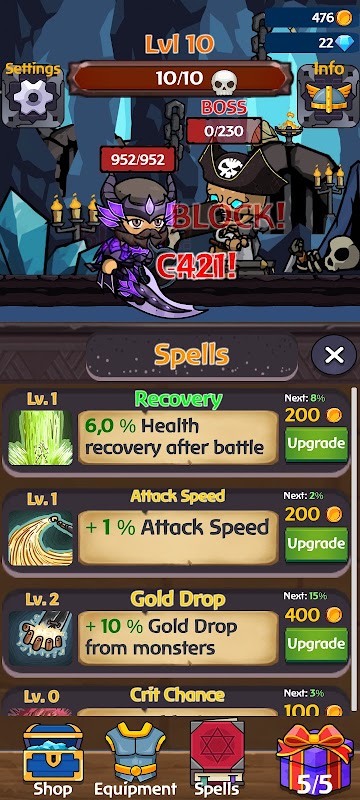 While you are busy developing your character, he himself will fight enemies with the help of auto-battle, you only need to pump the hero in time and supply him with new armor and weapons