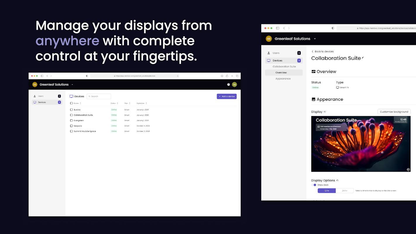Esqueça a frustração do tradicional compartilhamento de tela da smart TV. O aplicativo Mersive Smart torna o compartilhamento de conteúdo sem fio fácil e agradável, transformando qualquer ambiente em um espaço bonito e colaborativo.