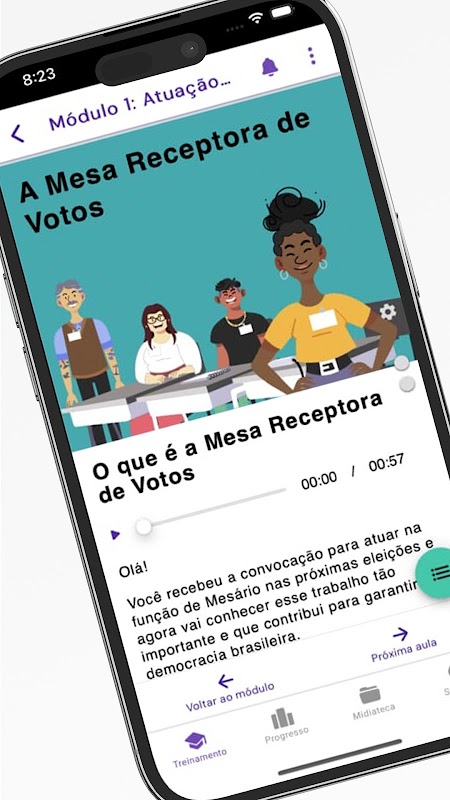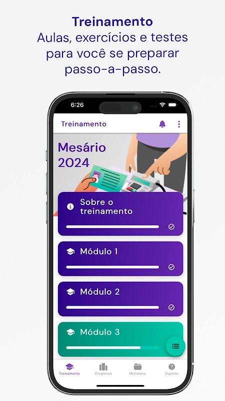 Aplicativo oficial da Justiça Eleitoral para capacitação de mesários e mesárias.
