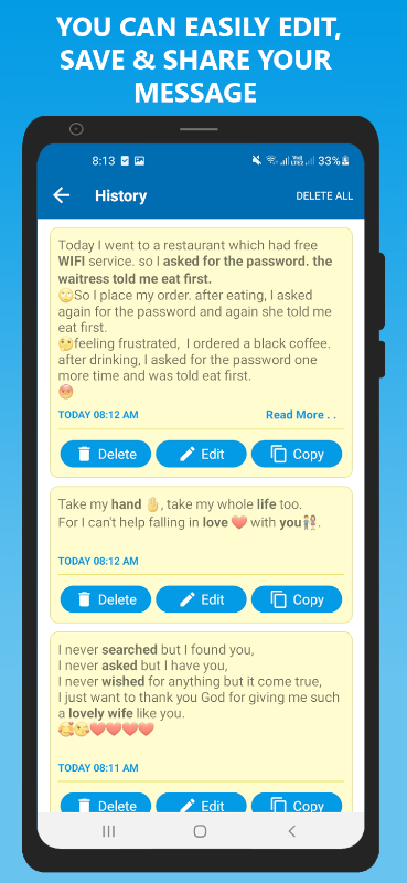 5. Compartilhamento fácil: copie e compartilhe suas mensagens de texto personalizadas com amigos e familiares.