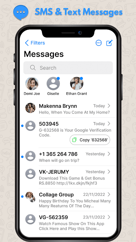 ☛ Um único toque em uma mensagem recebida permitirá que você copie códigos de autenticação de dois fatores, como códigos OTP