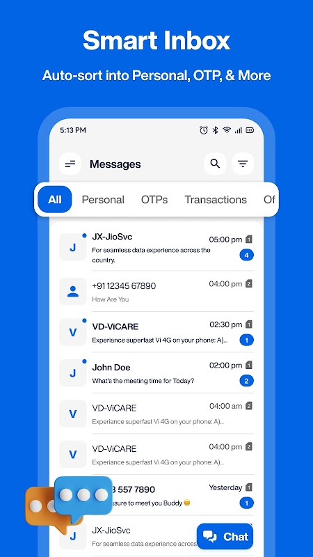 - Categorize mensagens automaticamente (transações, OTPs, ofertas, remetentes conhecidos/desconhecidos) para uma caixa de entrada descomplicada.