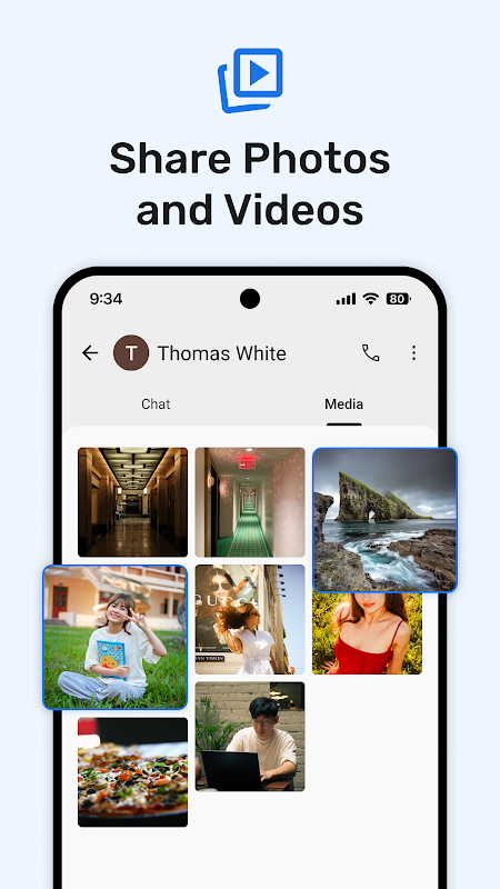 • Suporta compartilhamento de vídeos, áudios, imagens, emojis, GIFs e adesivos