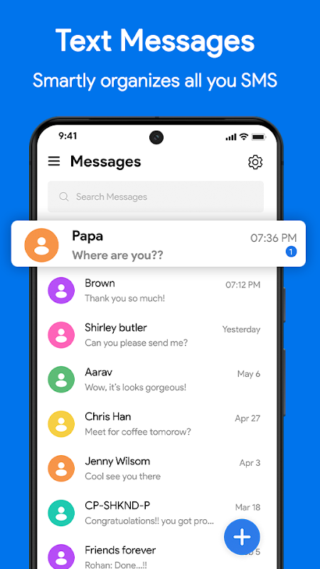 Mantenha-se conectado com seus entes queridos usando o Mensagens, um aplicativo de mensagens de texto confiável e seguro, desenvolvido para uma comunicação fluida. Seja enviando SMS ou MMS, o Mensagens facilita o compartilhamento de textos, fotos, adesivos e muito mais.