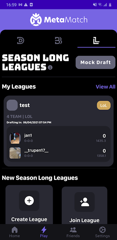 MetaMatch is the ultimate fantasy sports application for your favorite esports. It supports free Season-long leagues, Best ball leagues, and daily fantasy contests. Create contests and invite others to play along or join any available contests and reserve /submit your lineups for the same.