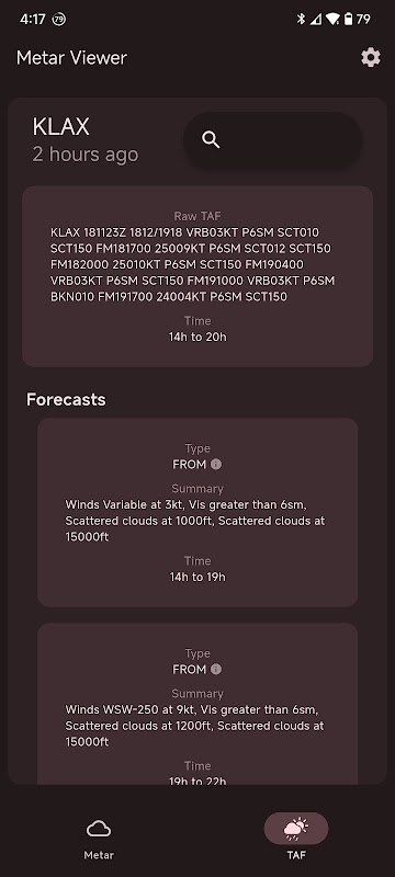 Metar Viewer é um aplicativo meteorológico de aviação projetado para ser simples e fazer seu trabalho: fornecer informações precisas e legíveis de METAR, TAF e aeroporto.