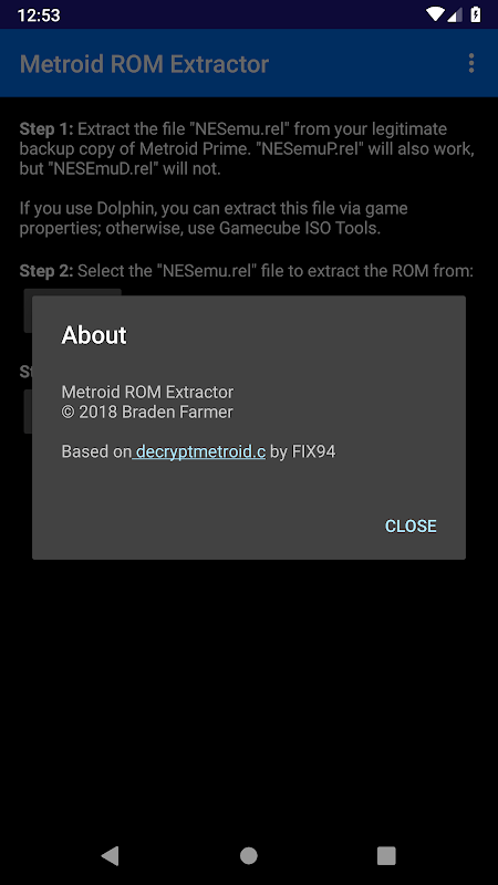 This is an Android app that will extract a copy of the NES version of Metroid using the "NESemu.rel" or "NESemuP.rel" file from your legitimate backup copy of Metroid Prime.
