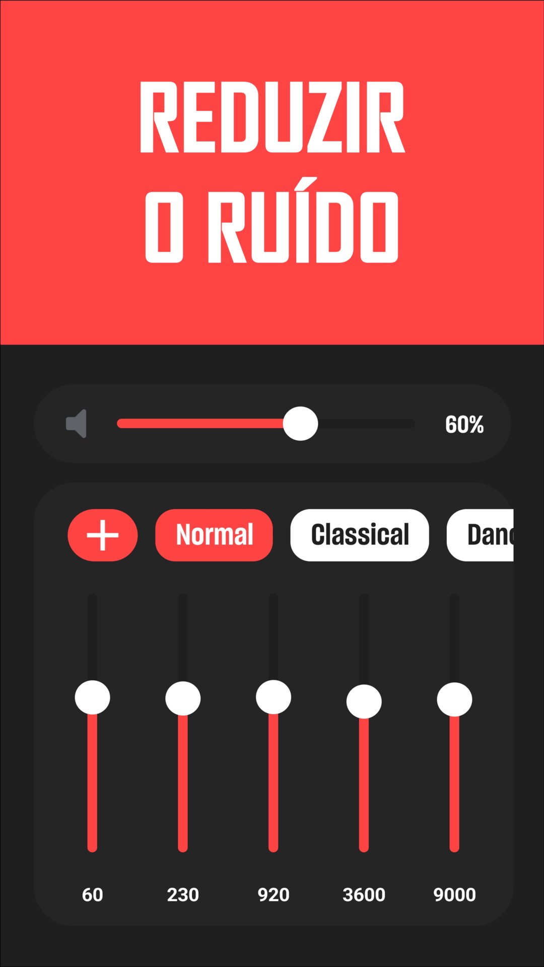 Ajuste o nível de amplificação, o equalizador e a redução de ruído conforme sua preferência.