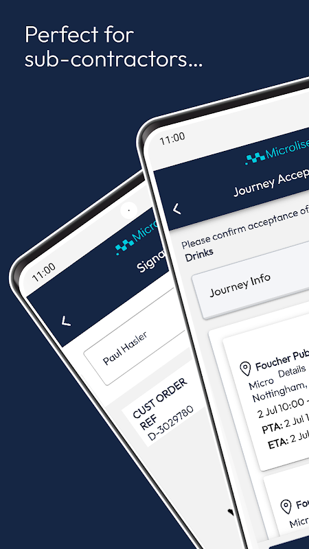 A vida de um motorista é facilitada com os aplicativos Microlise Comprovante de Entrega. Eles fornecem informações sobre horários de entrega e coleta e remessas, juntamente com opções de orientação de rota integradas, comunicações integradas (incluindo uma lista telefônica) e opções de pagamento no local. Nossos aplicativos de Prova de Entrega permitem que as tarefas sejam gerenciadas com facilidade.