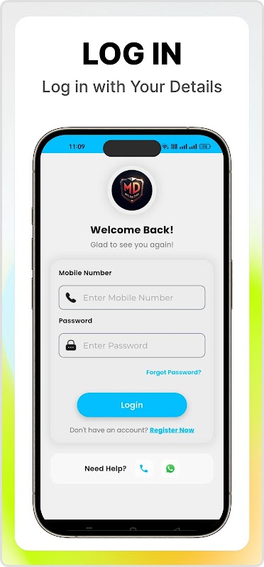 4. Para usuários existentes, basta fazer login usando seu número de telefone e senha.