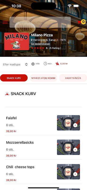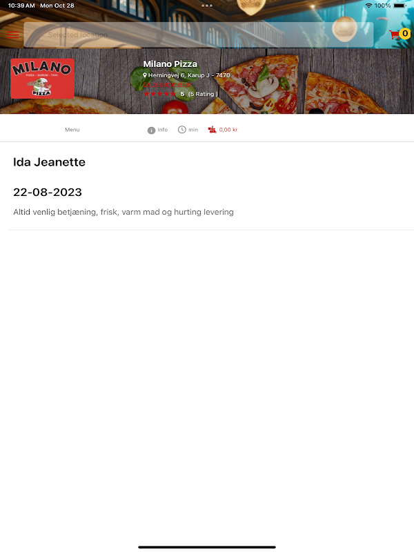 Bestil pizza, burger, pasta, m.m. med få tryk, nemt og ferir!