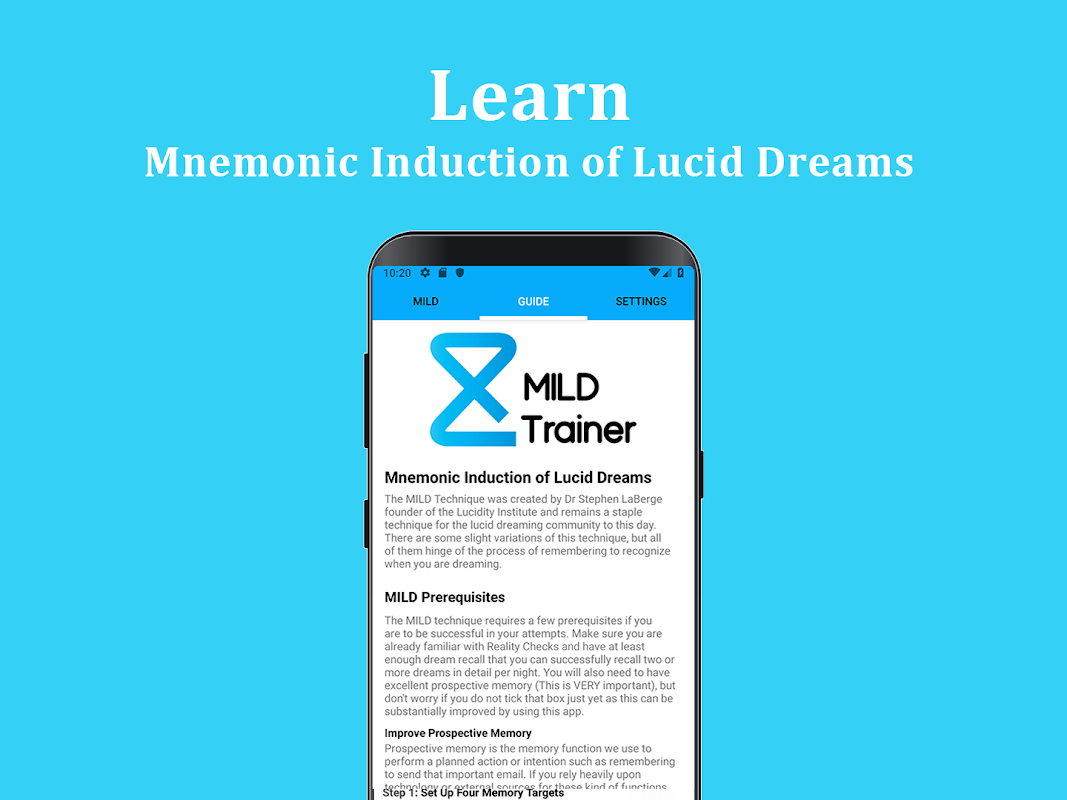 O MILD Trainer é uma ferramenta para aumentar a memória prospectiva usando uma técnica formulada pelo Dr. Stephen Laberge (Autor de "Explorando o Mundo do Sonho Lúcido") depois de descobrir que a maioria das pessoas não possui a memória prospectiva necessária para atingir o MILD com sucesso.