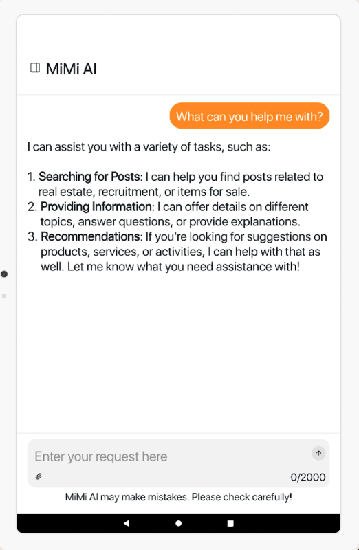 A plataforma de comércio eletrônico MiMi-AI ajuda a pesquisar, solicitar serviços e comprar mercadorias