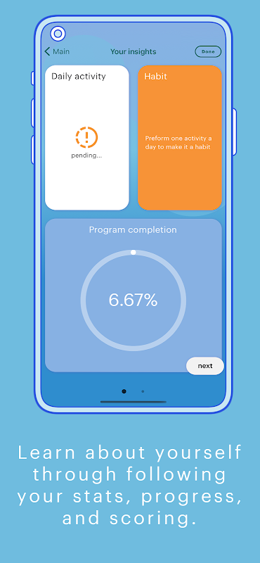O usuário aprenderá sobre ansiedade e estresse por meio de lições informativas e educacionais, conhecendo tudo o que há para saber sobre ele: como o cérebro e o corpo reagem ao estresse, como todos nós somos programados para agir e nos comportar sob estresse e como a ansiedade assume o controle quando o deixa funcionar sem atenção.
