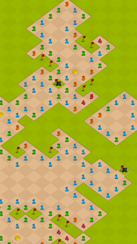 • Marque células suspeitas com bandeiras (pressione e segure) ou navegue por elas usando a lógica — não é necessário sinalizar para vencer!