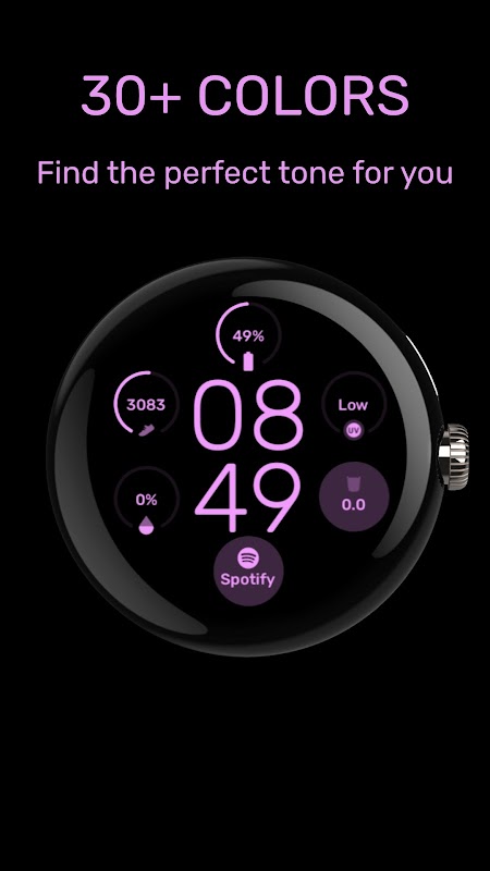 Perfeito para telas AMOLED, este mostrador de relógio foi projetado para Samsung Galaxy Watch, Pixel Watch, Fossil e todos os smartwatches Wear OS.