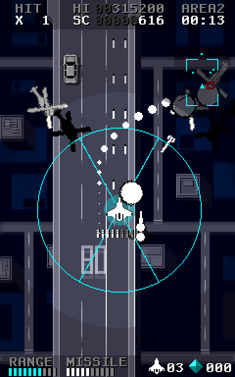 Este é um jogo de tiro com rolagem vertical. Você pode operar o caça MissileDancer, que implementa mísseis de bloqueio.