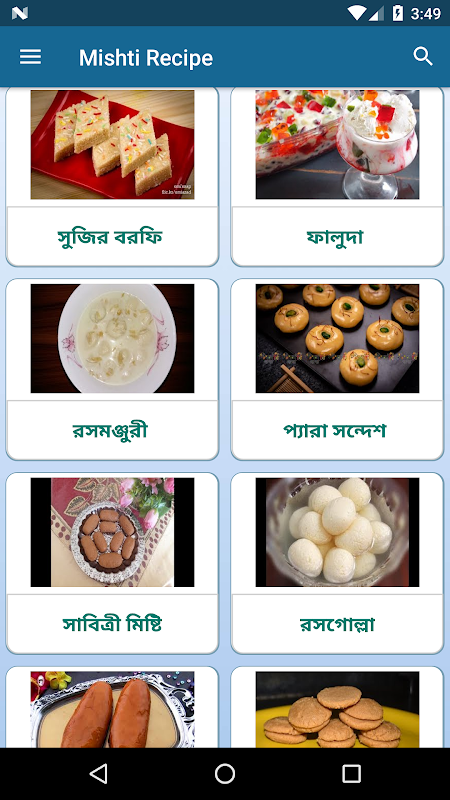 Hello. So you are looking for a Mishti/Sweets Recipe? Misti Recipe - মিষ্টি রেসিপি (ভিডিও) App is for you. Misti Recipe - মিষ্টি রেসিপি (ভিডিও) Contains a lot of Mishti Recipe.