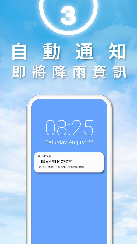 每天晚上主動推播明日天氣給您,快下雨時也會主動通知,即時獲得重要情報。