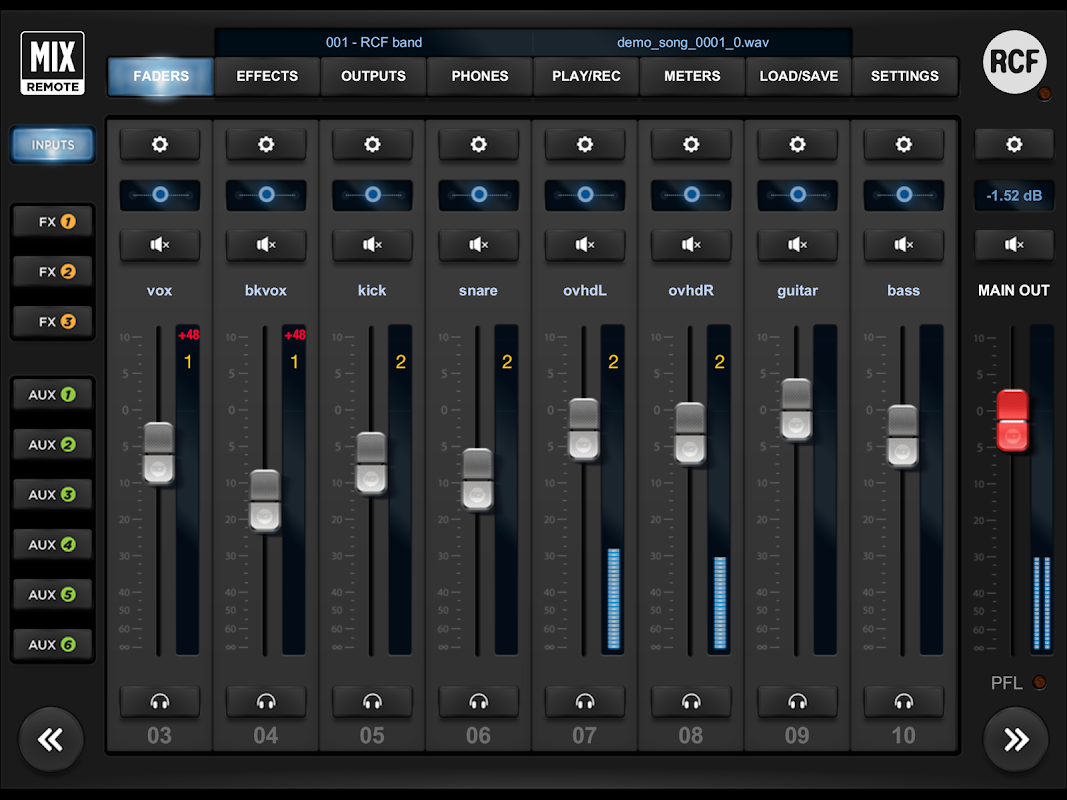 Este aplicativo permite o controle remoto completo da série M de misturadores de áudio digital de RCF.