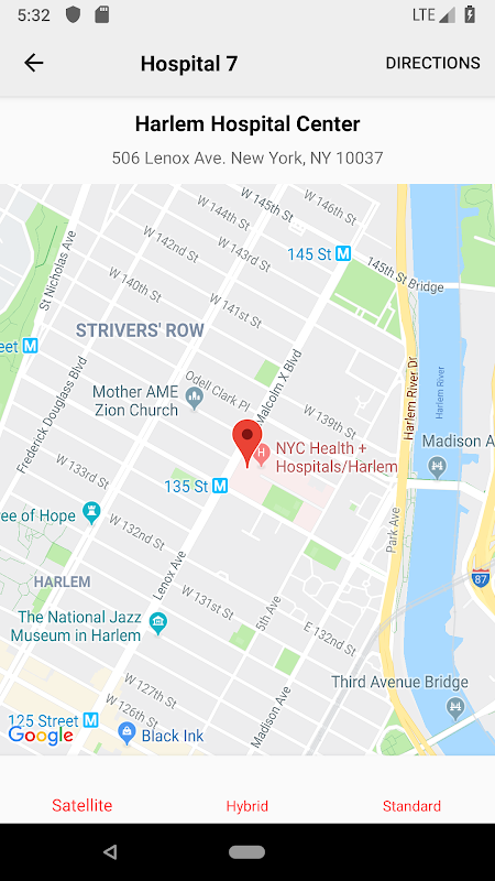 -Informações hospitalares, como endereço, categorias de aceitação, ETAs e distância da sua localização atual